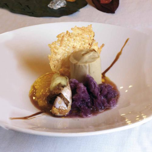 Mousse de Berenjena de Almagro con Granizado de vino tinto